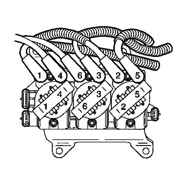 5. Install the spark plug wires 2, 4, and 6 to the engine left side spark plugs.