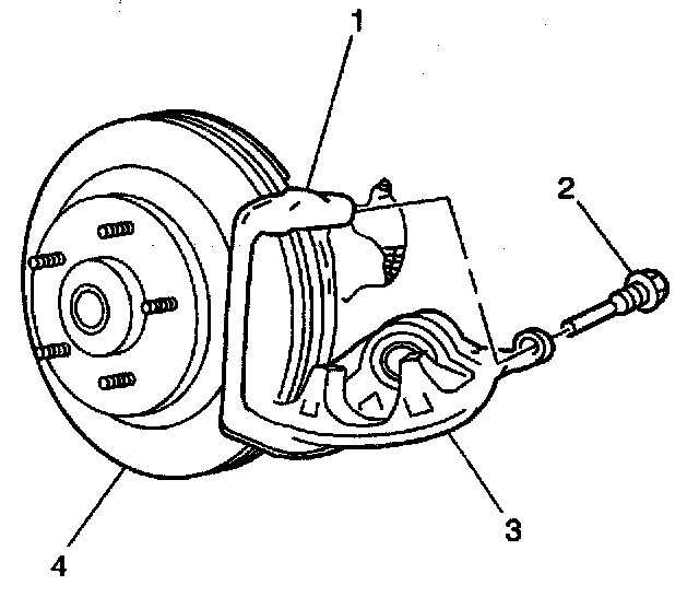 12. Remove the caliper (3) from the rotor (4) and the caliper bracket (1).