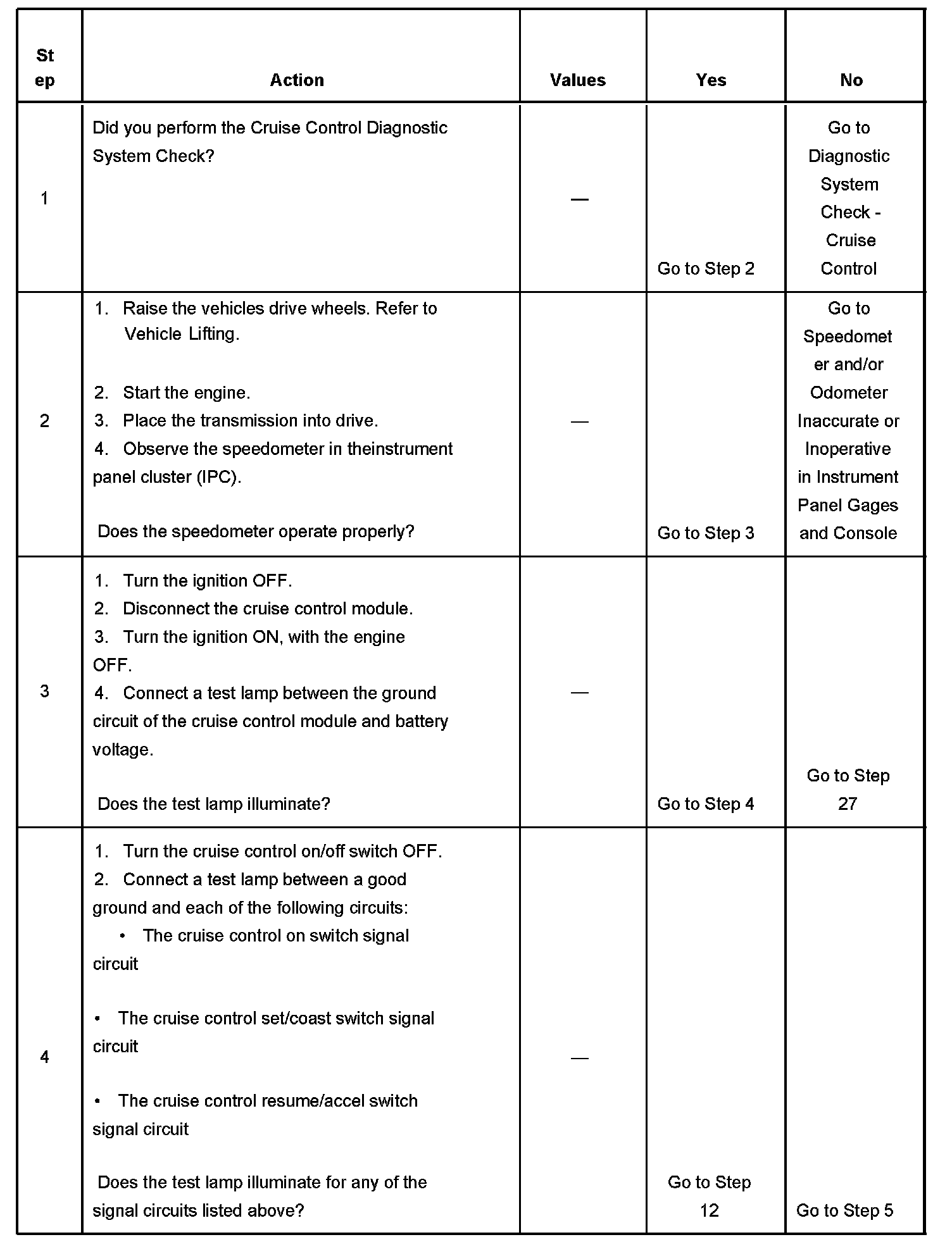 CRUISE CONTROL INOPERATIVE/MALFUNCTIONINGDIAGNOSTIC AIDS