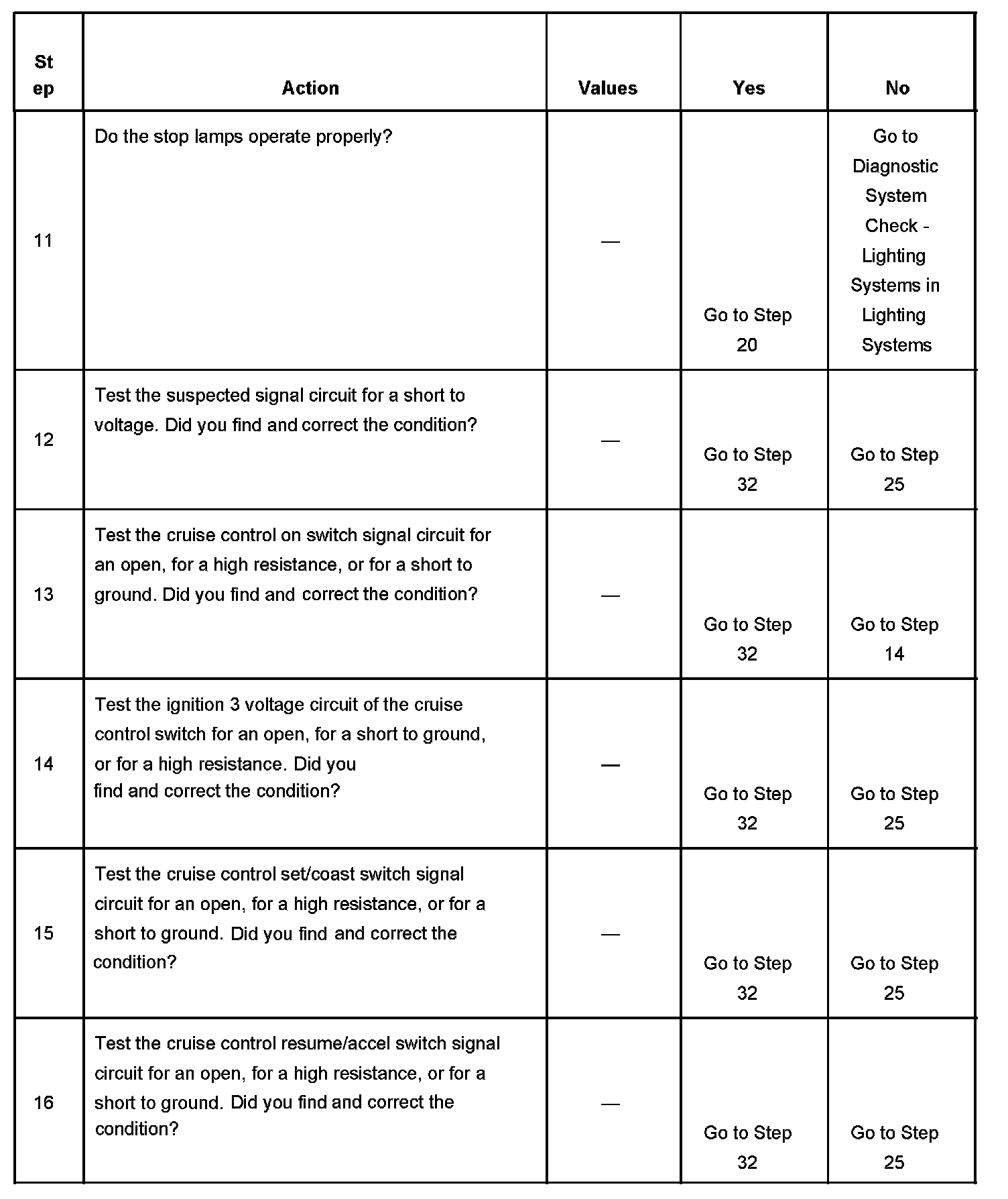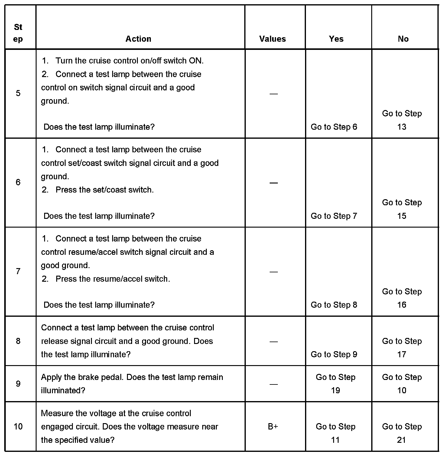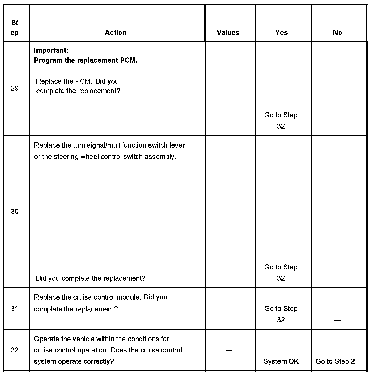 - When testing vehicles equipped with steering wheel controls, the steering wheel must be rotated to each stop position while testing the cruise control signal circuits. This will assure the integrity of the (SIR) coil.