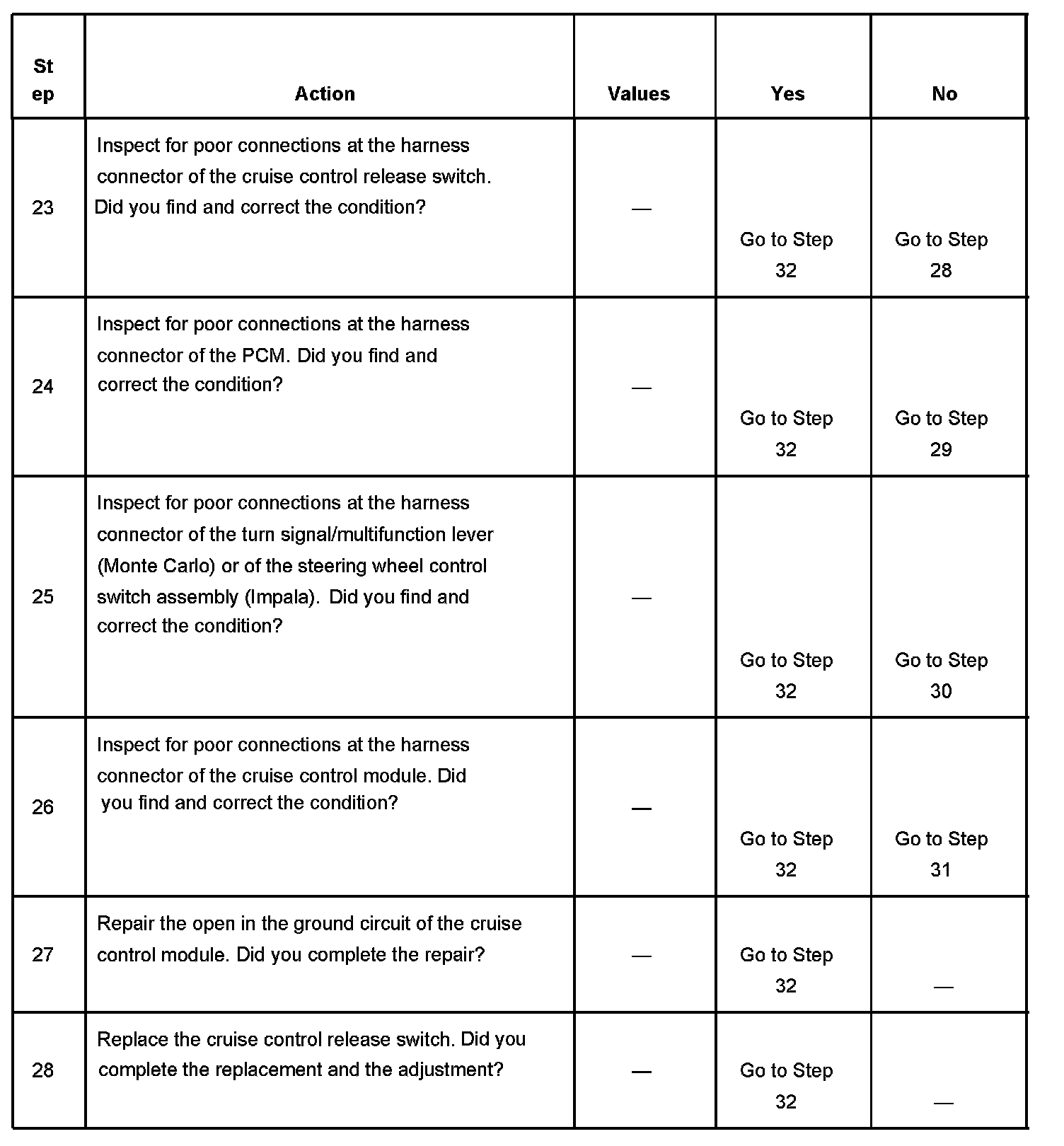 - The cruise control release switch is adjusted properly. Refer to Cruise Release Switch Adjustment.