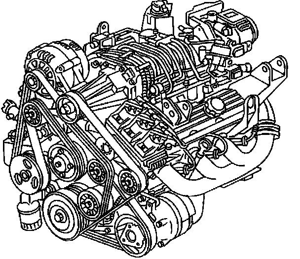All driven accessories rigidly mount to the engine. Spring-loaded belt tensioners maintain the drive belt tension. Each drive belt has its own tensioner. A drive belt squeak, occurring when the engine starts or stops, is normal and has no effect on the durability of the drive belt. The drive belt tensioner can control the drive belt tension over a broad range of drive belt lengths, due to stretching. However, there are limits to the tensioner's compensation ability. Poor tension control and/or damage to the tensioner may occur after using the tensioner outside of its operating range. Replace the drive belt when this occurs.