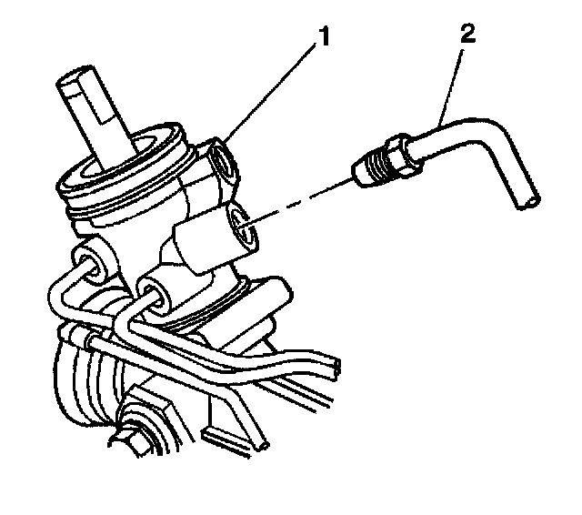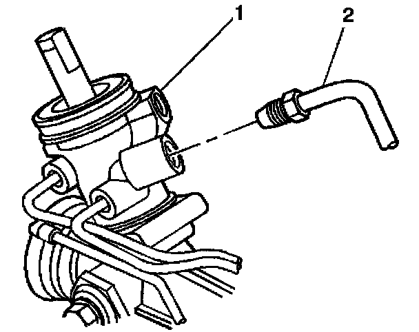 3. Remove the power steering return hose (2) from the power steering gear (1).