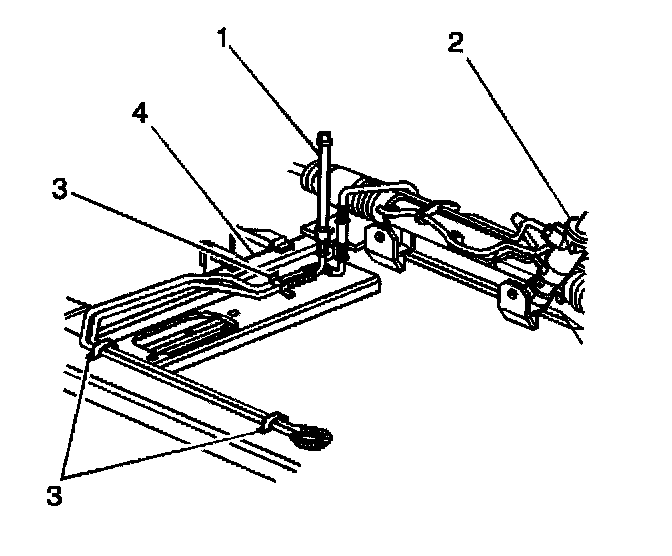 3. Install the return hose (1) to the hose retainers (3) on the cradle (4).