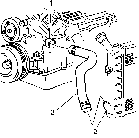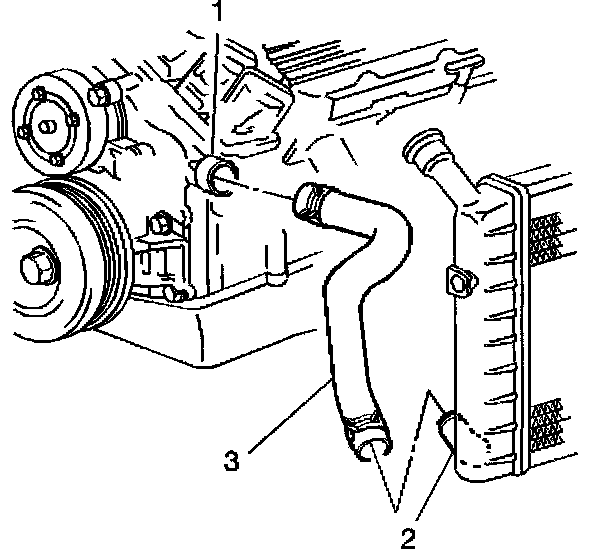 4. Install the radiator outlet hose (3) to the radiator (2).
