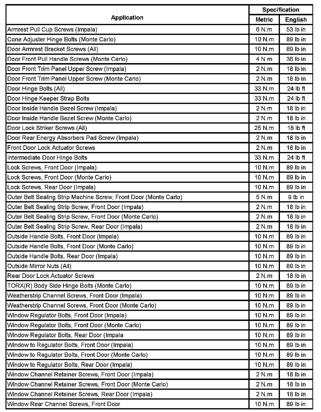 Fastener Tightening Specification