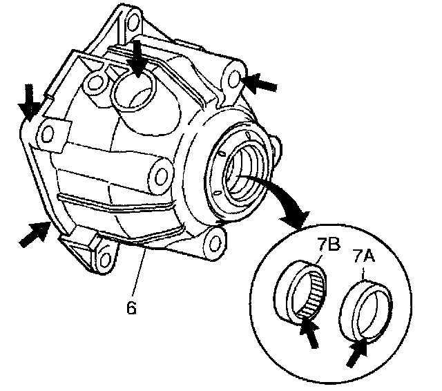 3. Install the case extension housing (6) with the axle seal and the O-ring (8).