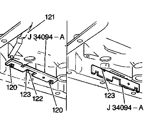 1. Use the J 34094-A to set the middle thermo pin (123).