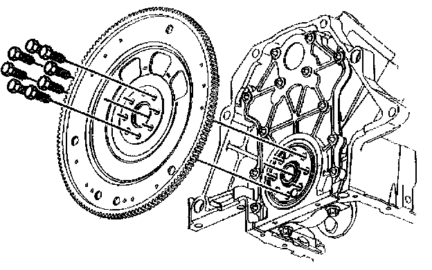 3. Loosen the 8 engine flywheel bolts.