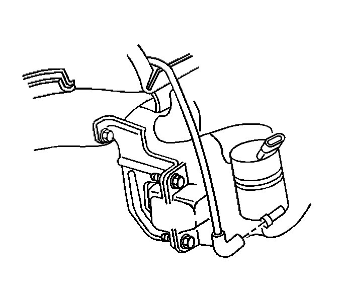 7. Pull the washer pump hose out from along side the right front inner fender and into the engine compartment.