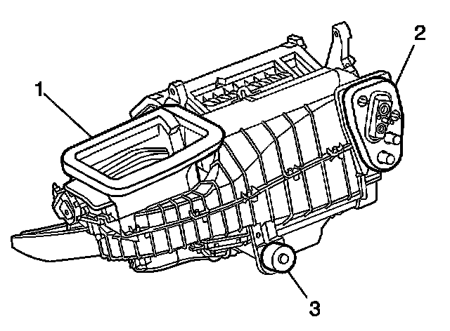 1. Install new seals (1,2,3) to the outer HVAC module assembly.