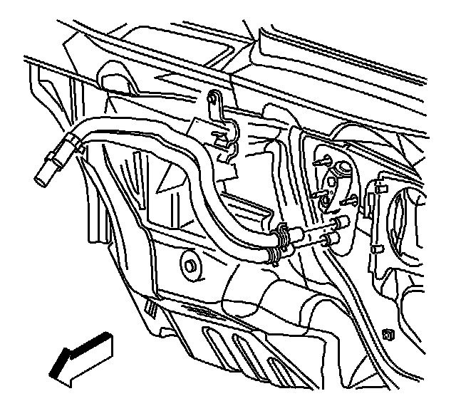 4. Use J 38185 in order to position aside the heater hose inlet and outlet clamp at the heater core.