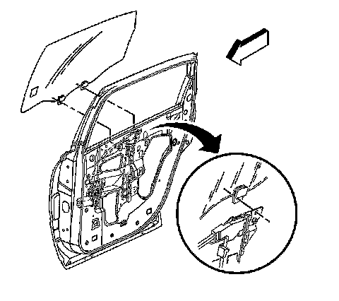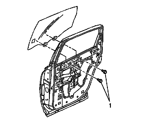 Slide the window up and install the two bolts which hold the rear door window to the window regulator.