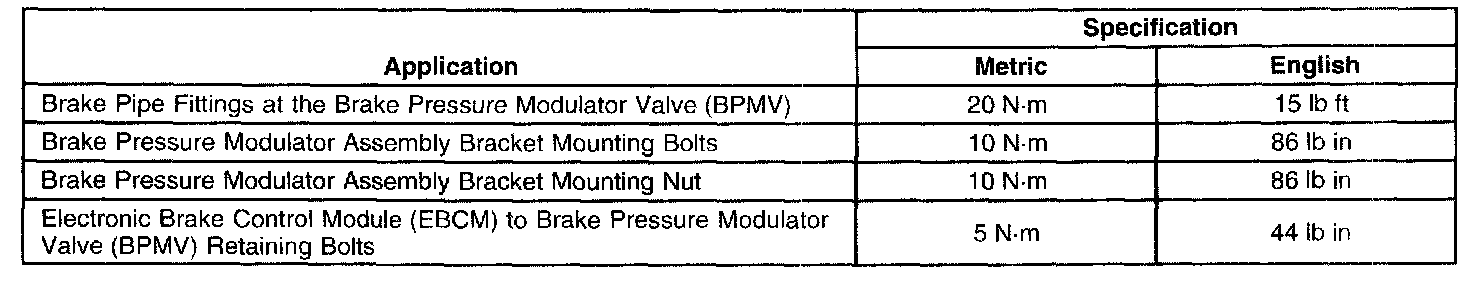Fastener Tightening Specifications: