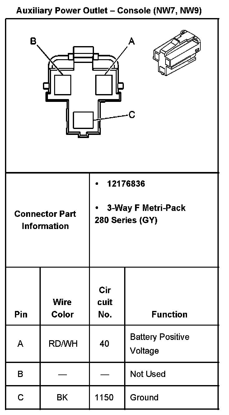 Auxiliary Power Outlet - Front (With RPO Code w/o NW7, NW9):