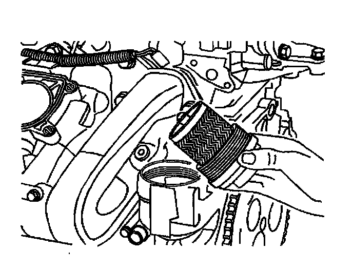 Notice: Over torquing the oil filter cap may cause damage to the oil filter cap resulting in an oil leak.