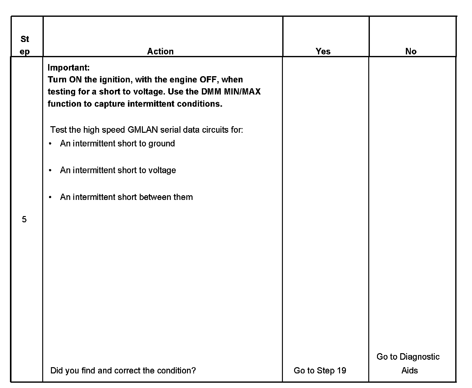 - A short between high speed GMLAN (+) and high speed GMLAN (-) circuits