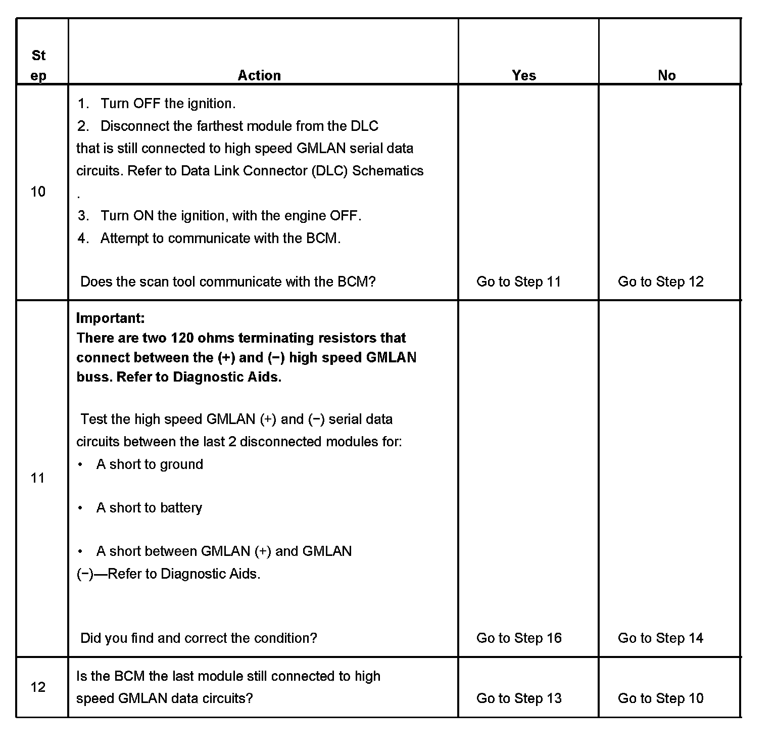 2. A partial malfunction in the high speed GMLAN serial data circuits uses a different procedure from a total malfunction of the high speed GMLAN data circuits. Refer to Data Link References to identify which modules communicate on the high speed GMLAN serial data circuits. Scan Tool Testing and Procedures