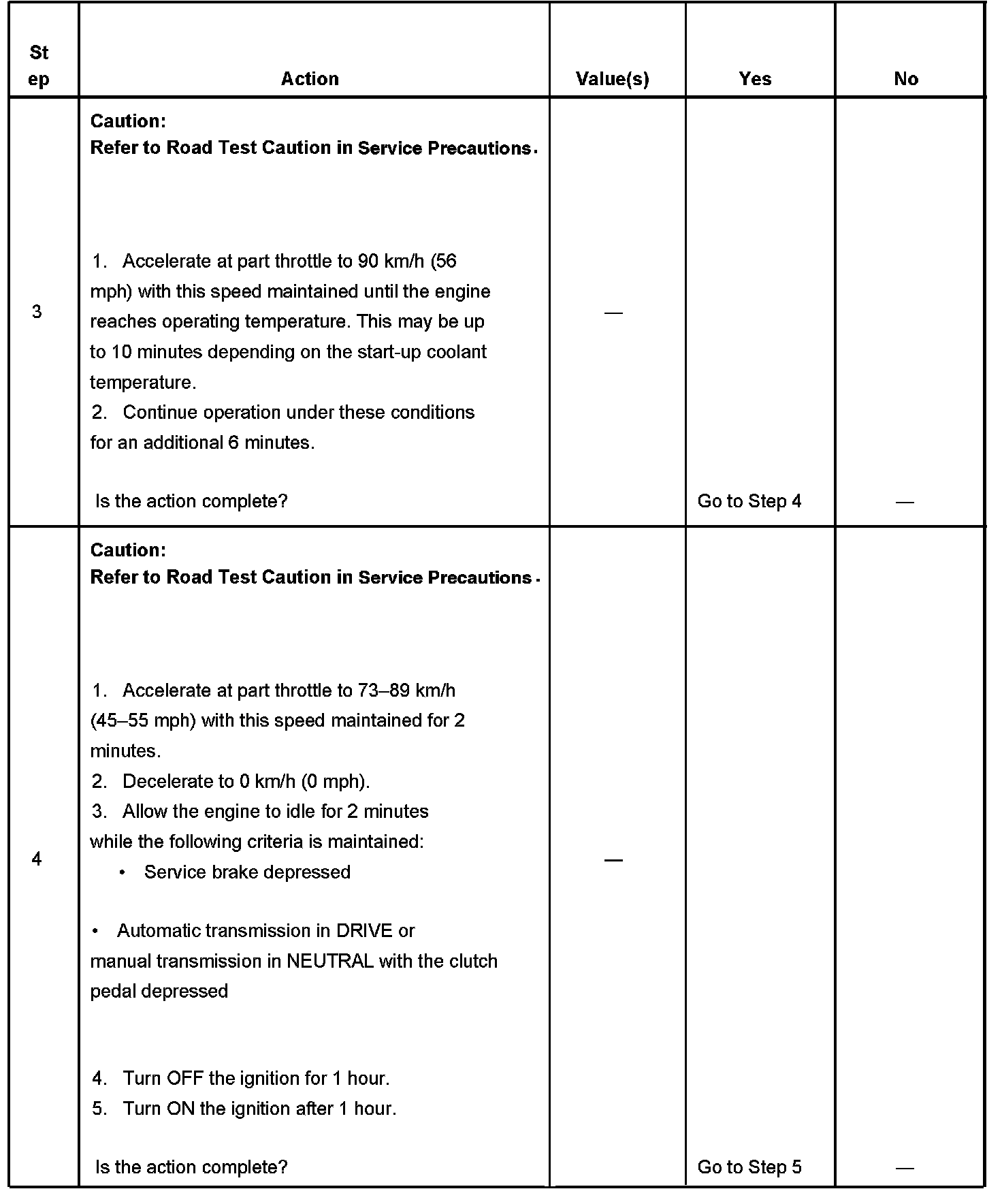 4. This step is to run the Catalyst diagnostics and the Engine Off Natural Vacuum (EONV) portion of the EVAP diagnostics. The Catalyst diagnostics run during the idle period immediately following a cruise period that meets a minimum calibrated RPM and time period. The EONV portion of the EVAP diagnostics runs with the engine OFF.