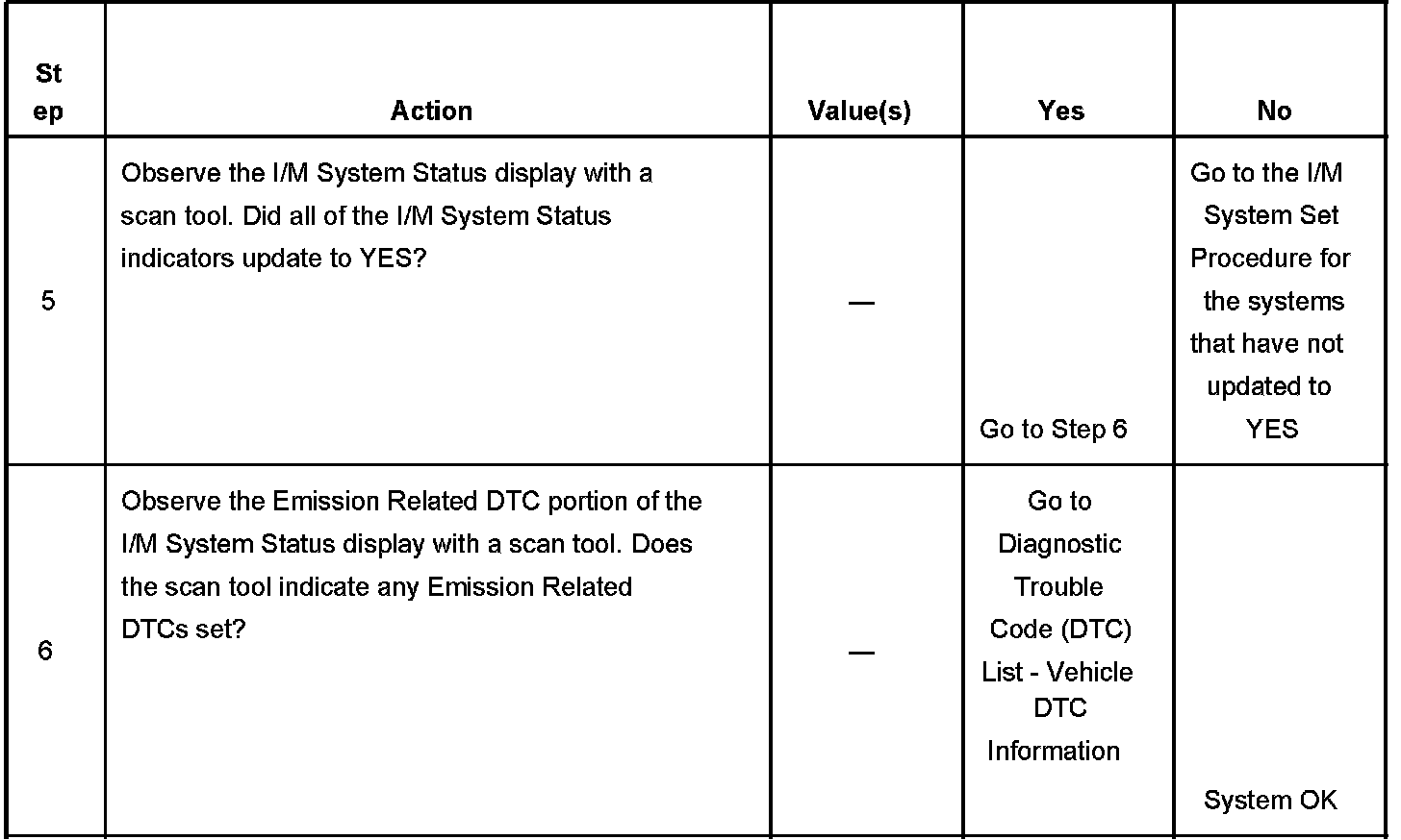 6. The I/M System Status only reports on whether or not a diagnostic has run, not what the outcome of the test was. If any emission related DTC sets after the tests are complete, the DTC will require diagnosis.