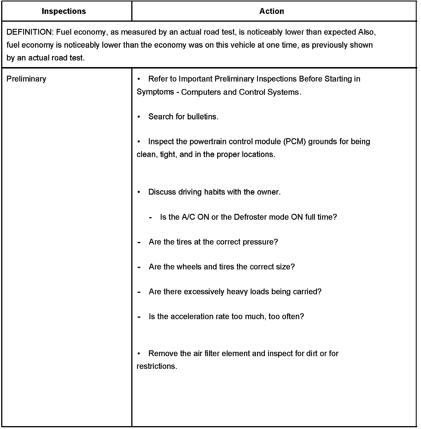 Poor Fuel Economy