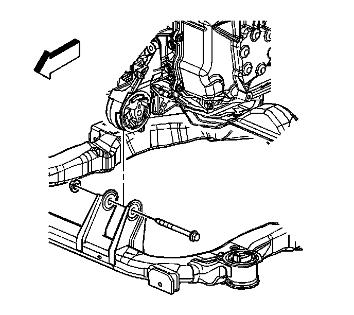 13. Remove the front transmission mount through bolt.