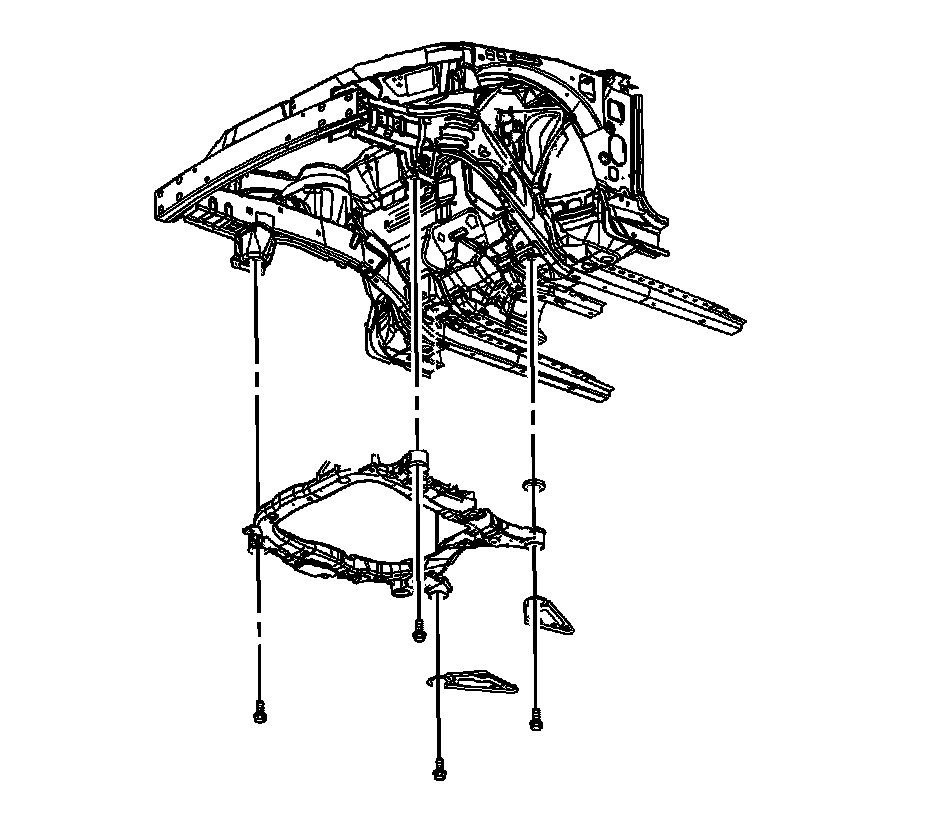 17. Connect the lower radiator support bracket to frame bolts using the alignment feature.