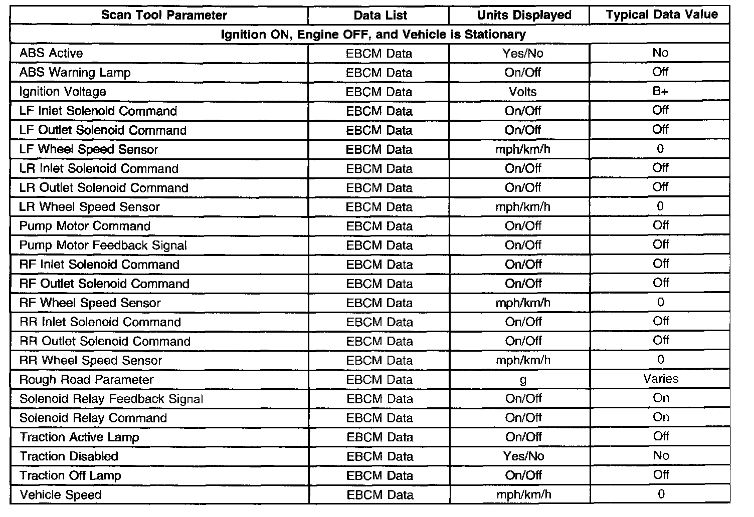 Scan Tool Data List