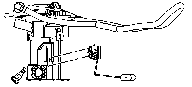 4. Install the fuel level sensor wiring harness to the molded-in tab on the pump module bowl.