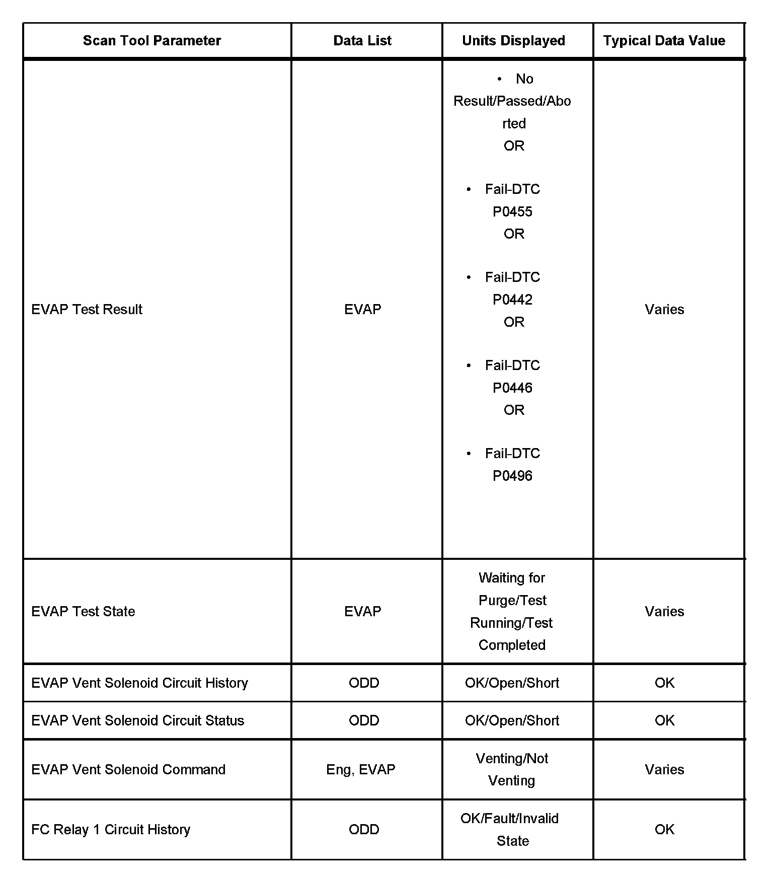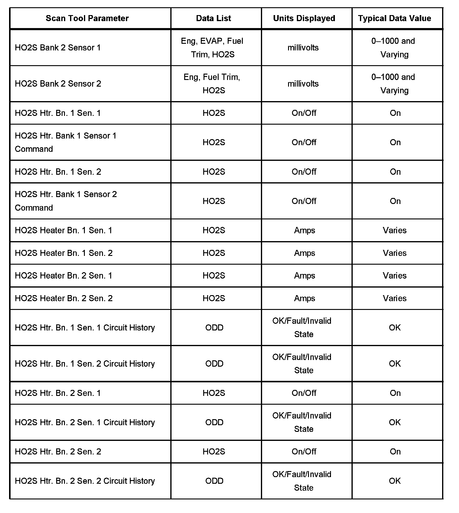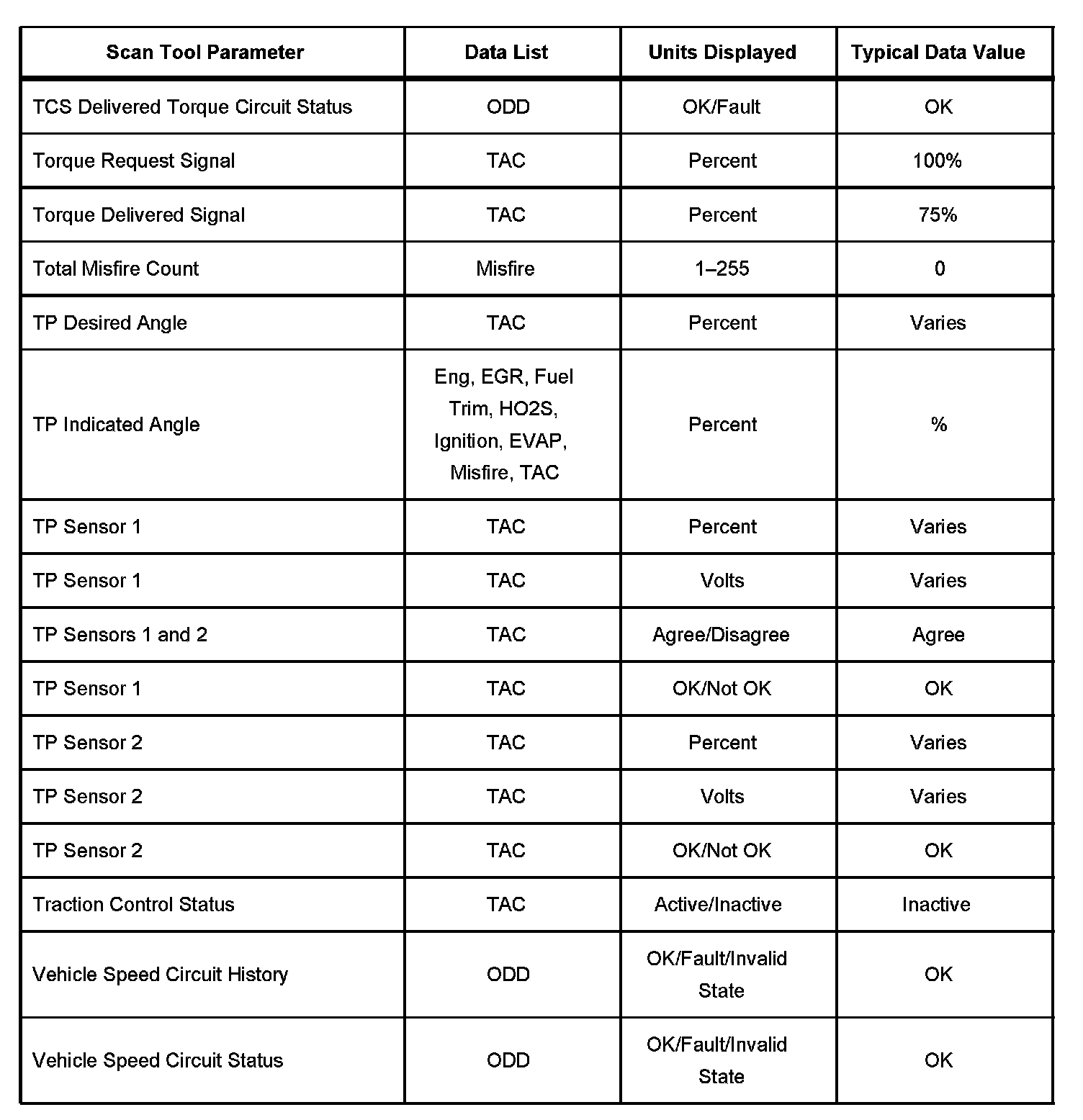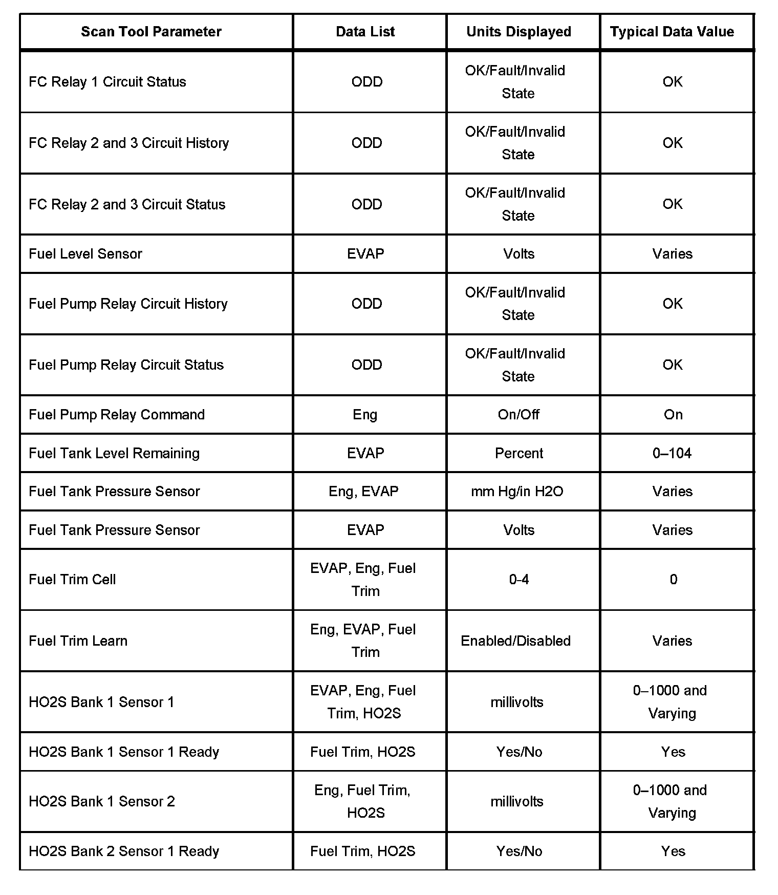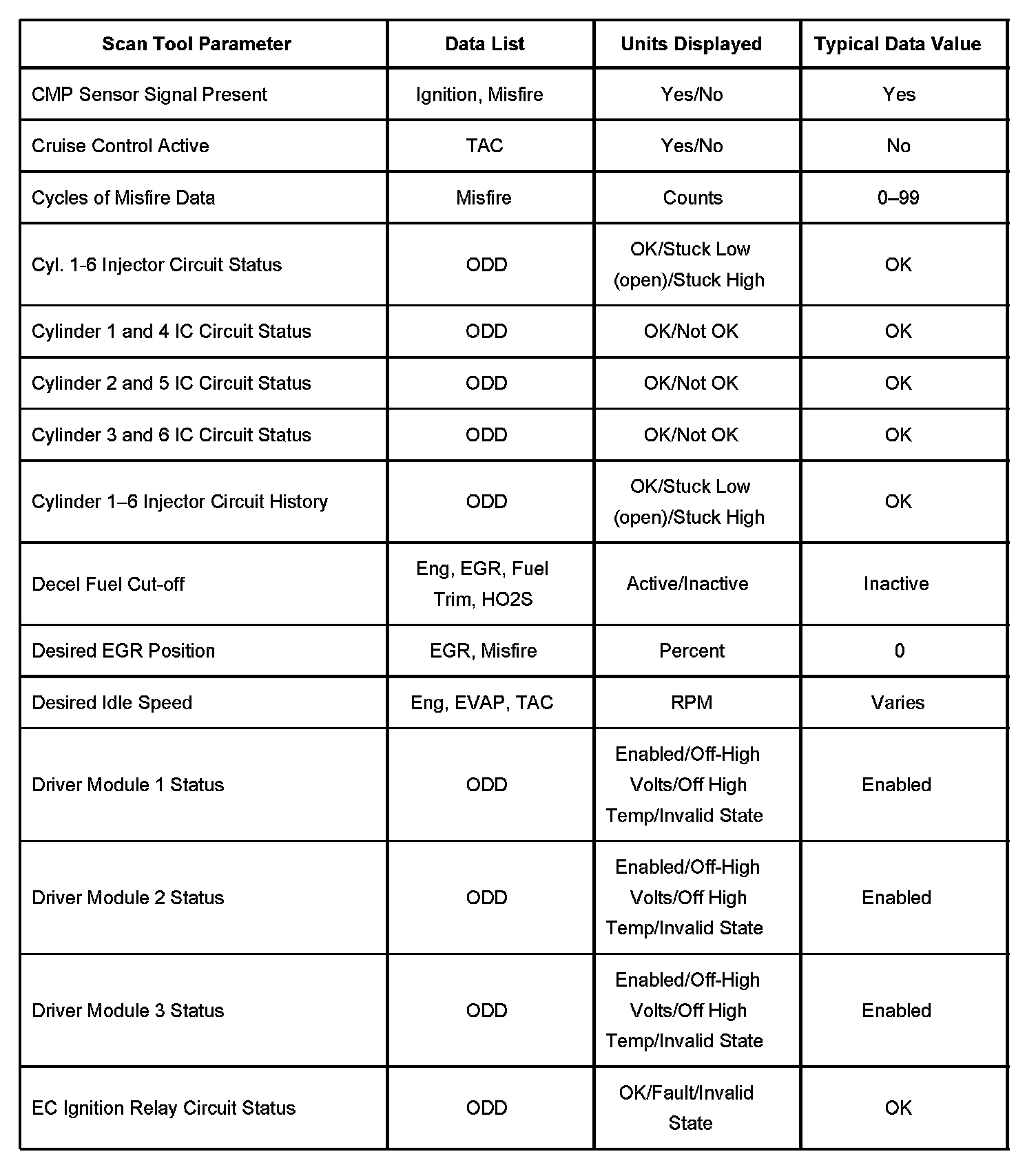 The column labeled Data List indicates where a parameter can be located on the scan tool. Refer to the scan tool operating manual for the exact locations of the data lists. The following is a description of each term listed:
