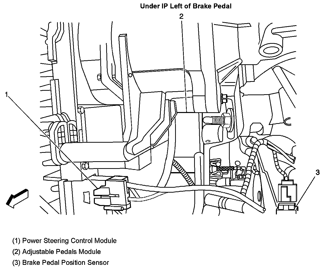 Under IP Left Of Brake Pedal: