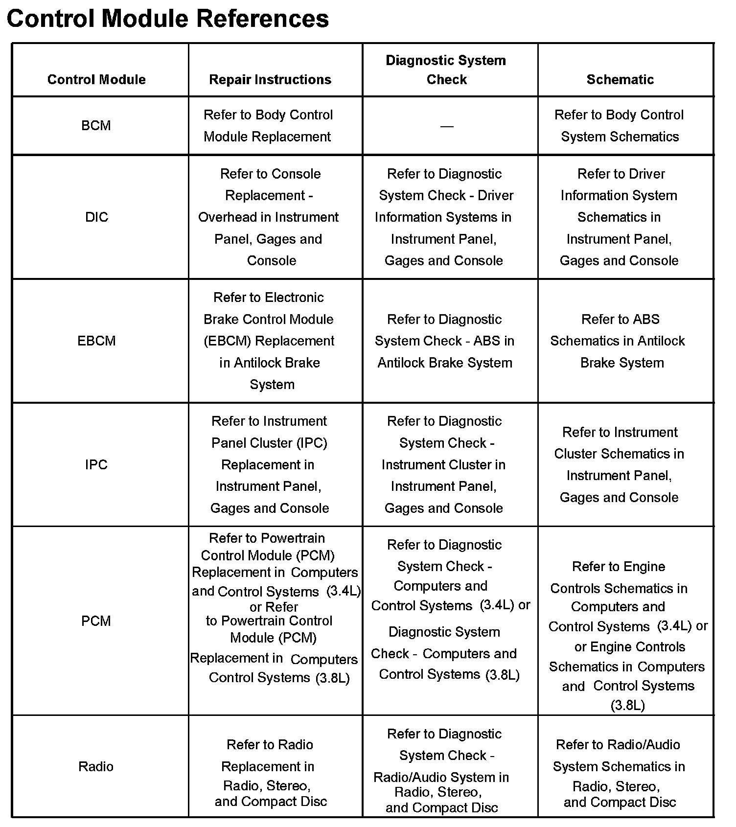 Control Module References