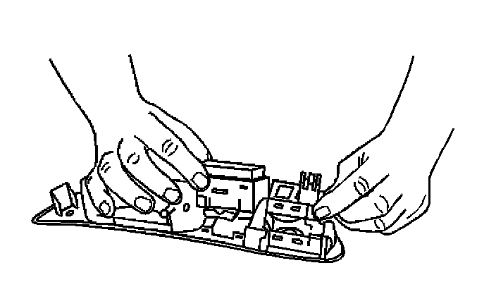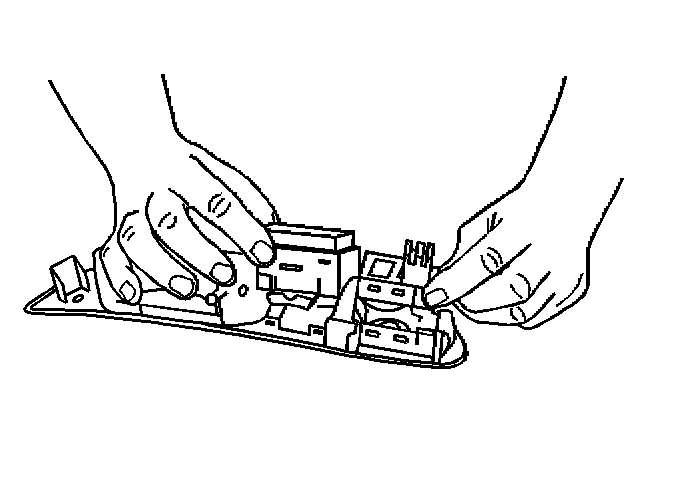 3. Disconnect the power mirror switch by pressing the thumb tab retainers outward and remove the switch from the pull handle.