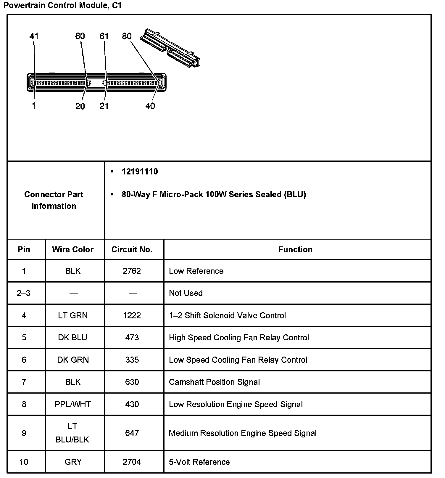 Powertrain Control Module, C1 Part 1: