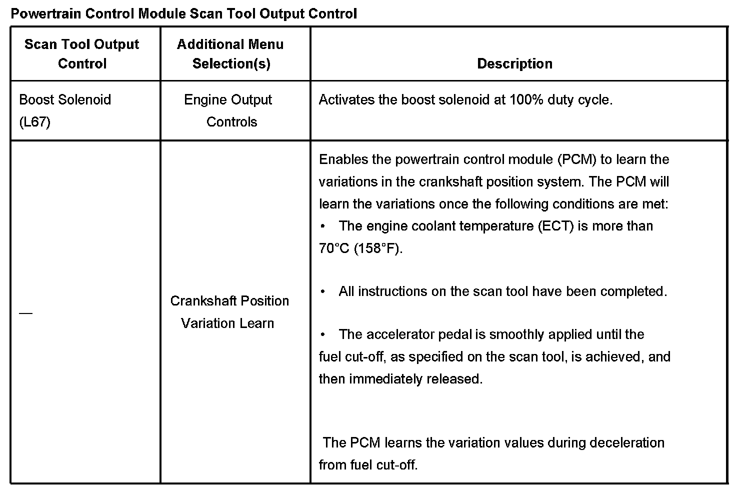 Powertrain Control Module Scan Tool Output Control Part 1: