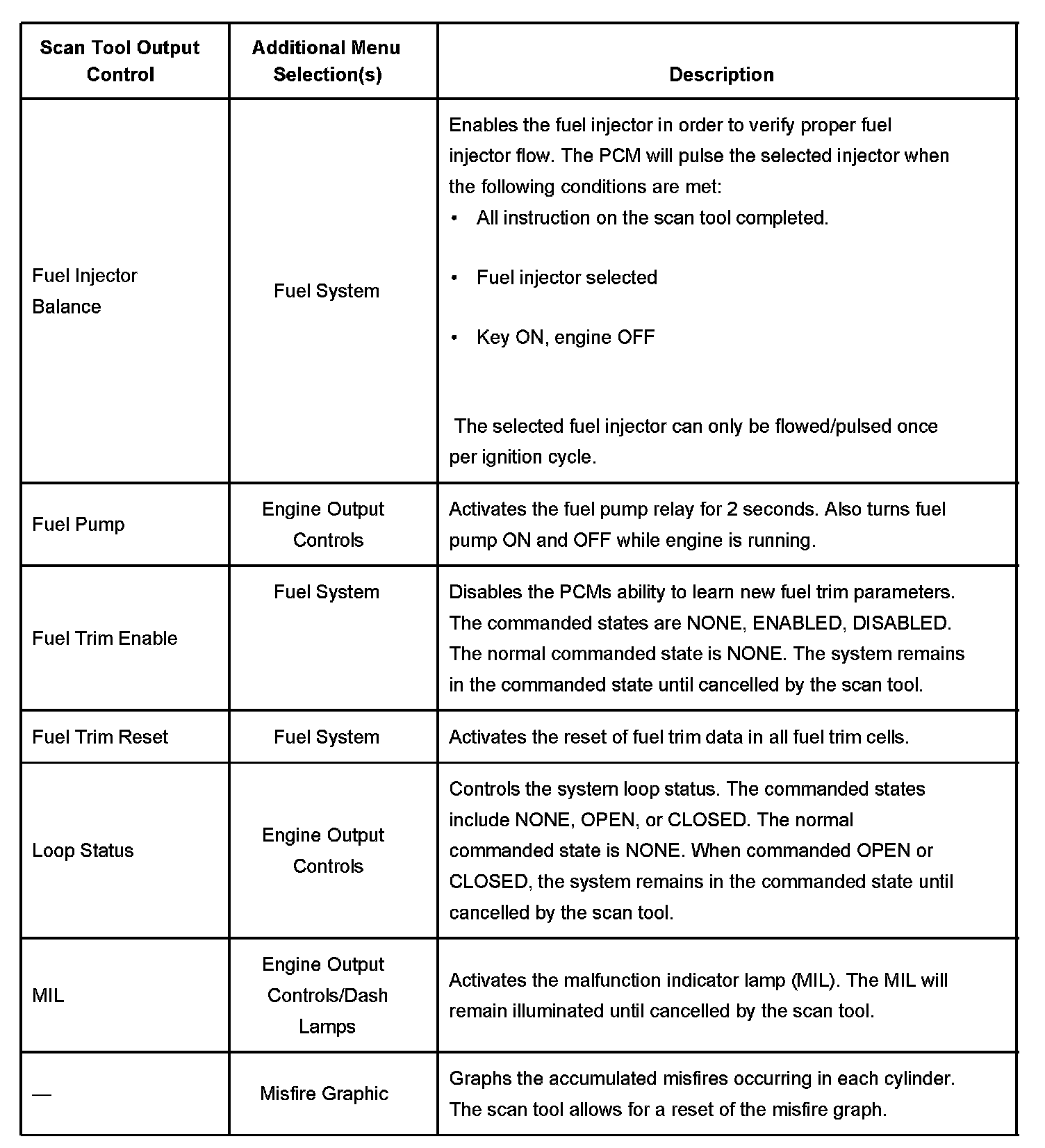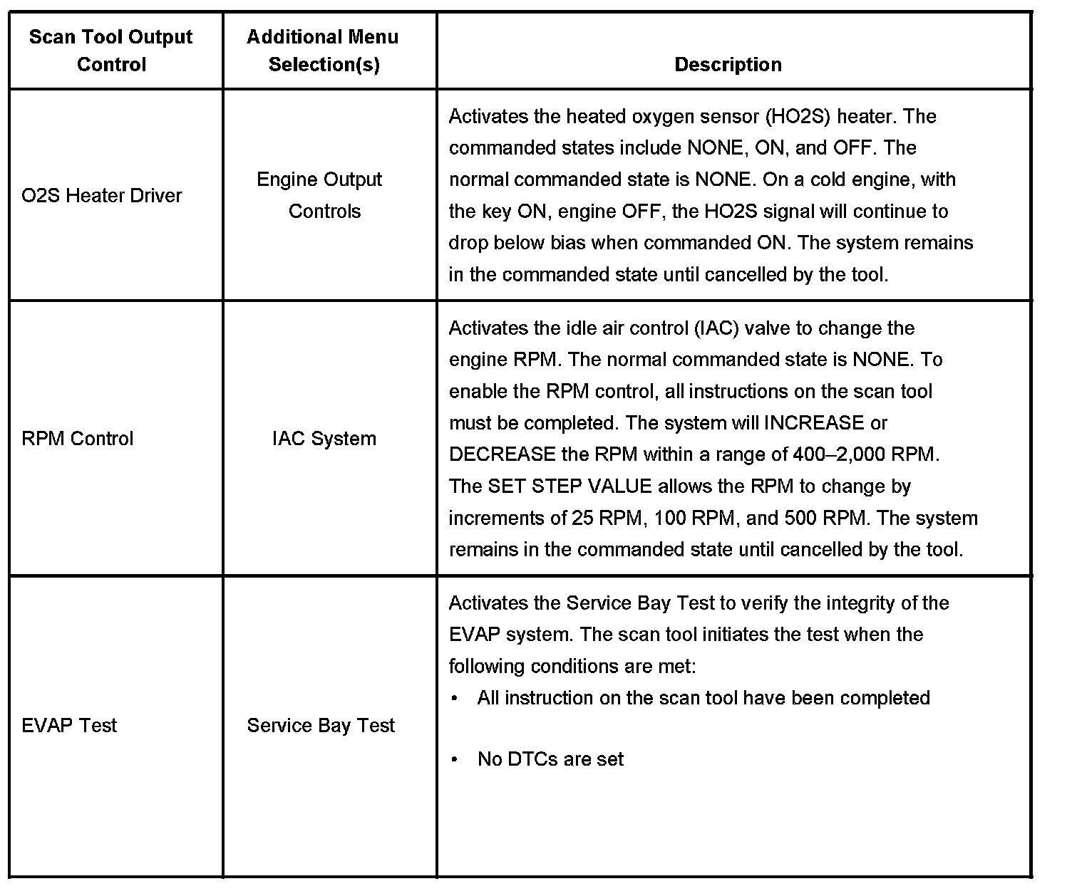 Scan Tool Output Controls