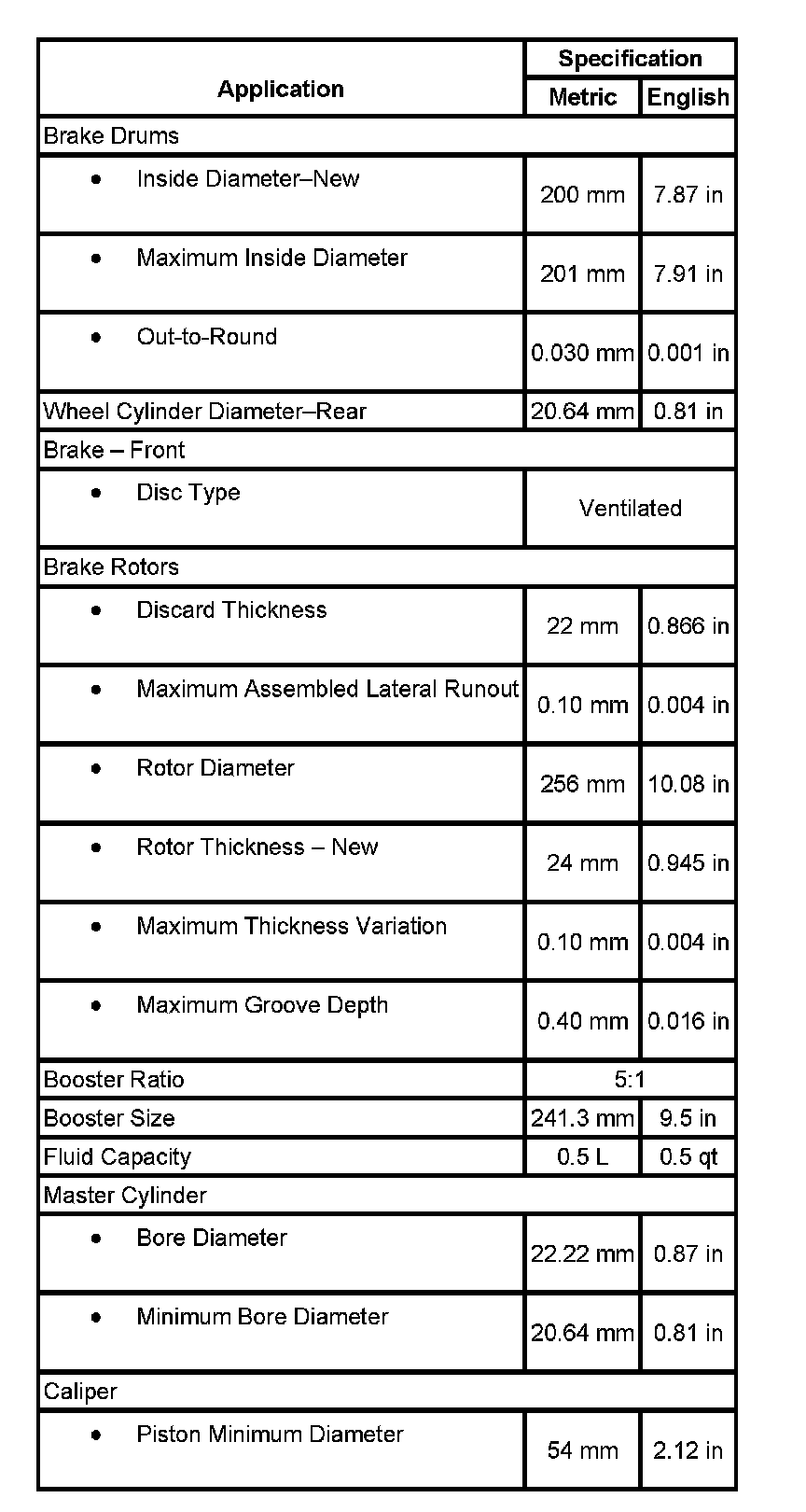 Brake System Specifications: