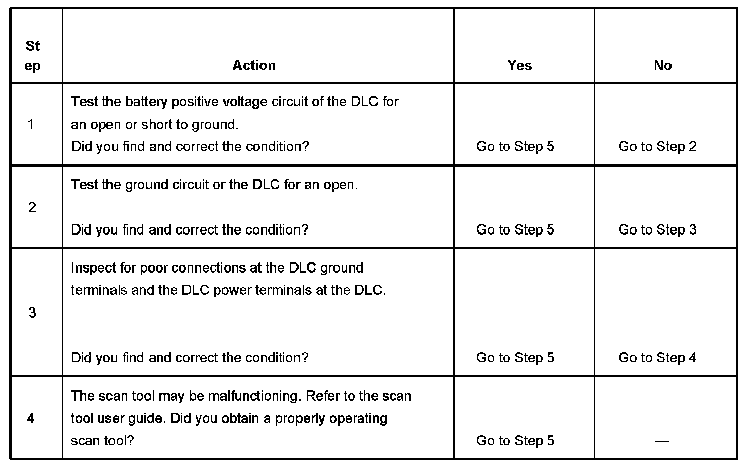 4. The battery positive voltage and ground circuits of the DLC are functioning properly. The malfunction must be due to the scan tool.
