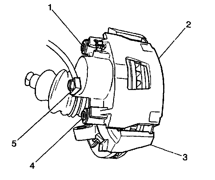 10. Fully loosen the caliper bolts (1, 4) from the steering knuckle (3).