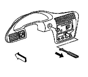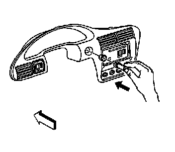 4. Remove the cigar lighter housing by placing one side of the T portion of J 42059 into the tab window and angle the other side into the opposite tab window. Pull the lighter housing straight out.