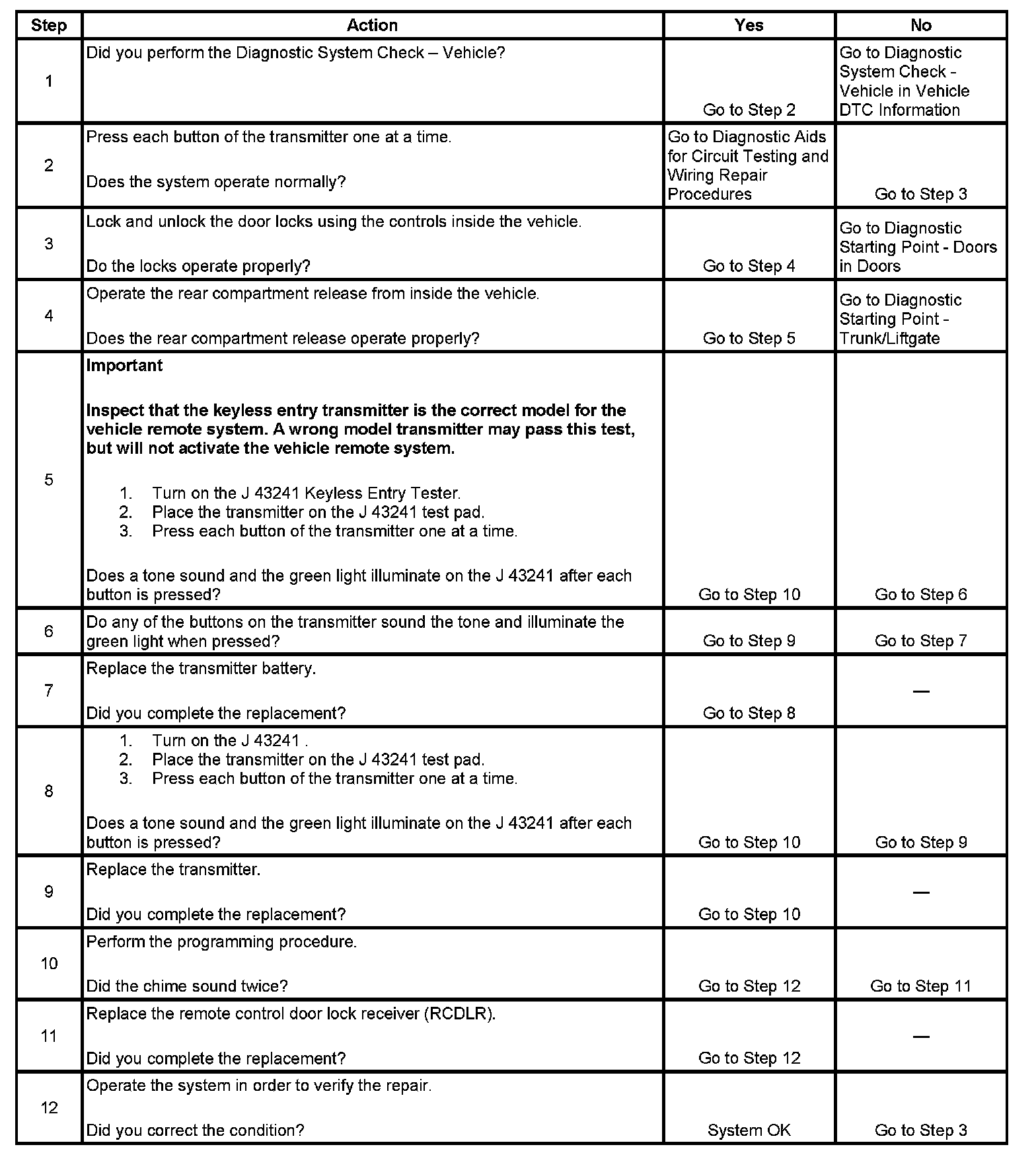 Keyless Entry System Inoperative