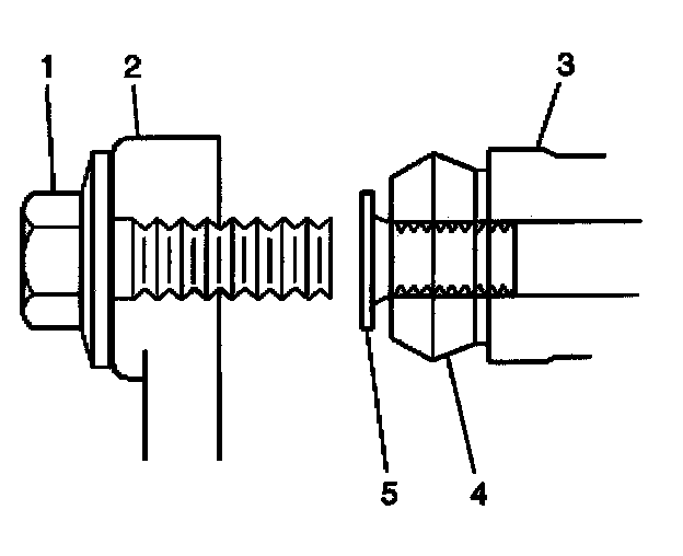 7. Remove the brake hose to caliper bolt (1).