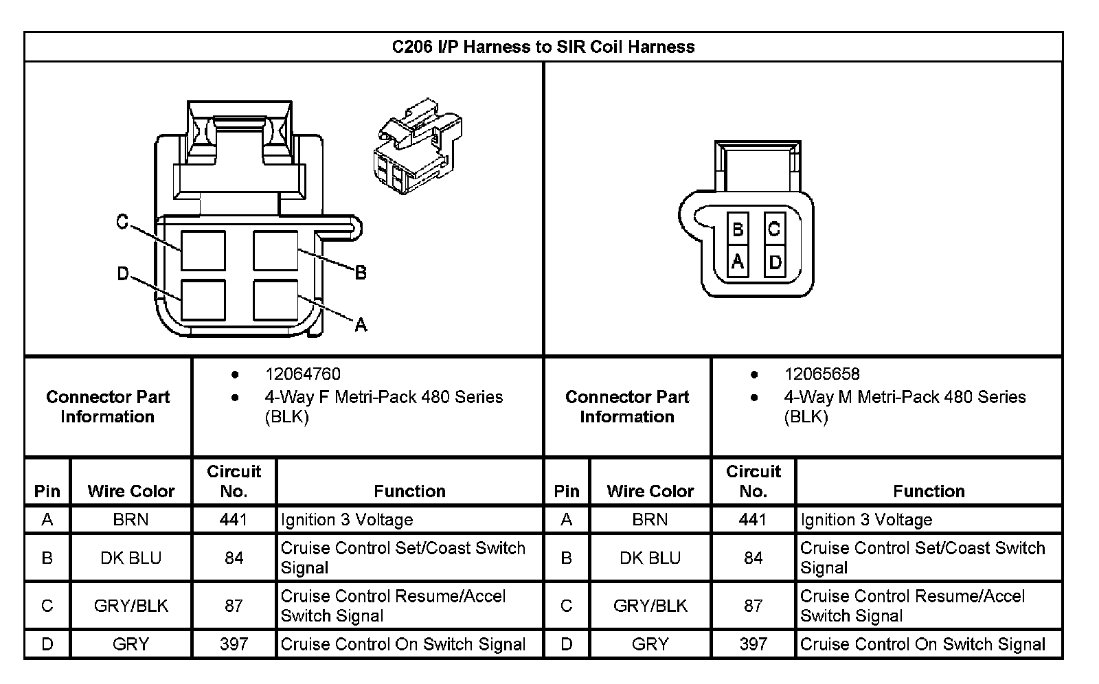 C206 I/P Harness To SIR Coil Harness: