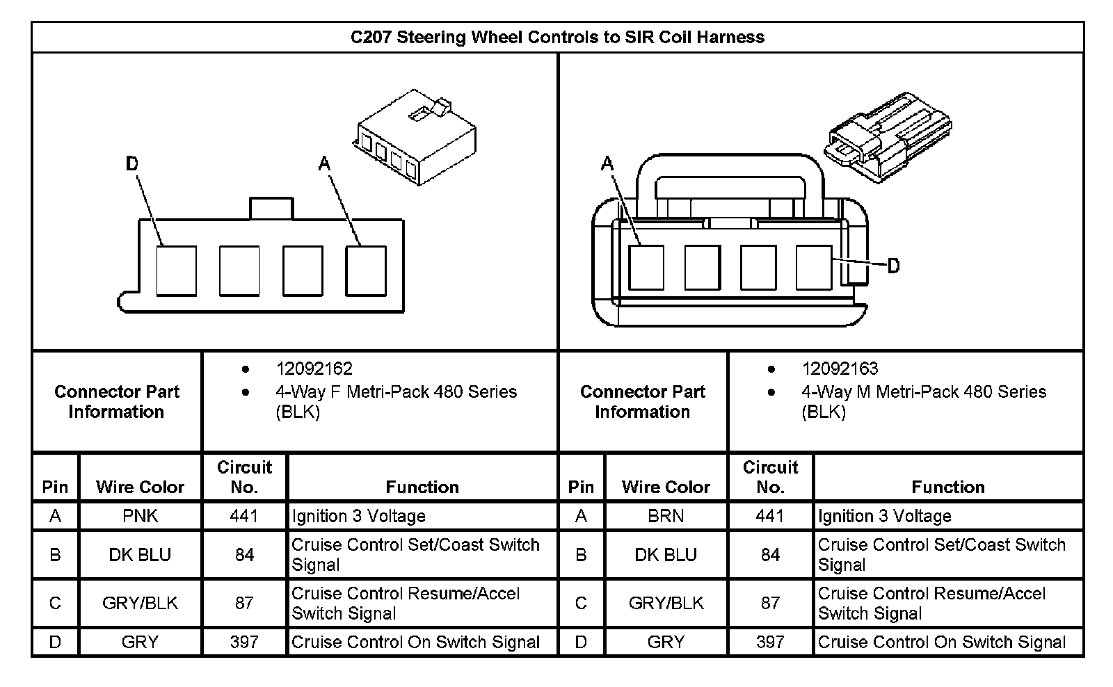 C207 Steering Wheel Controls To SIR Coil Harness: