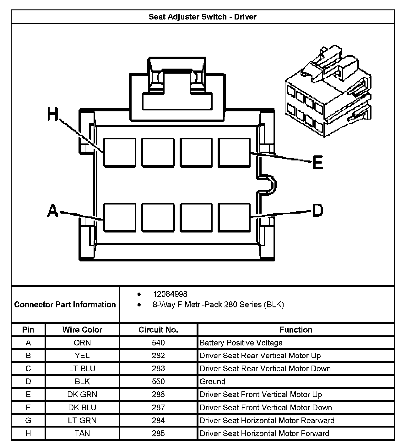 Seat Adjuster Switch - Driver: