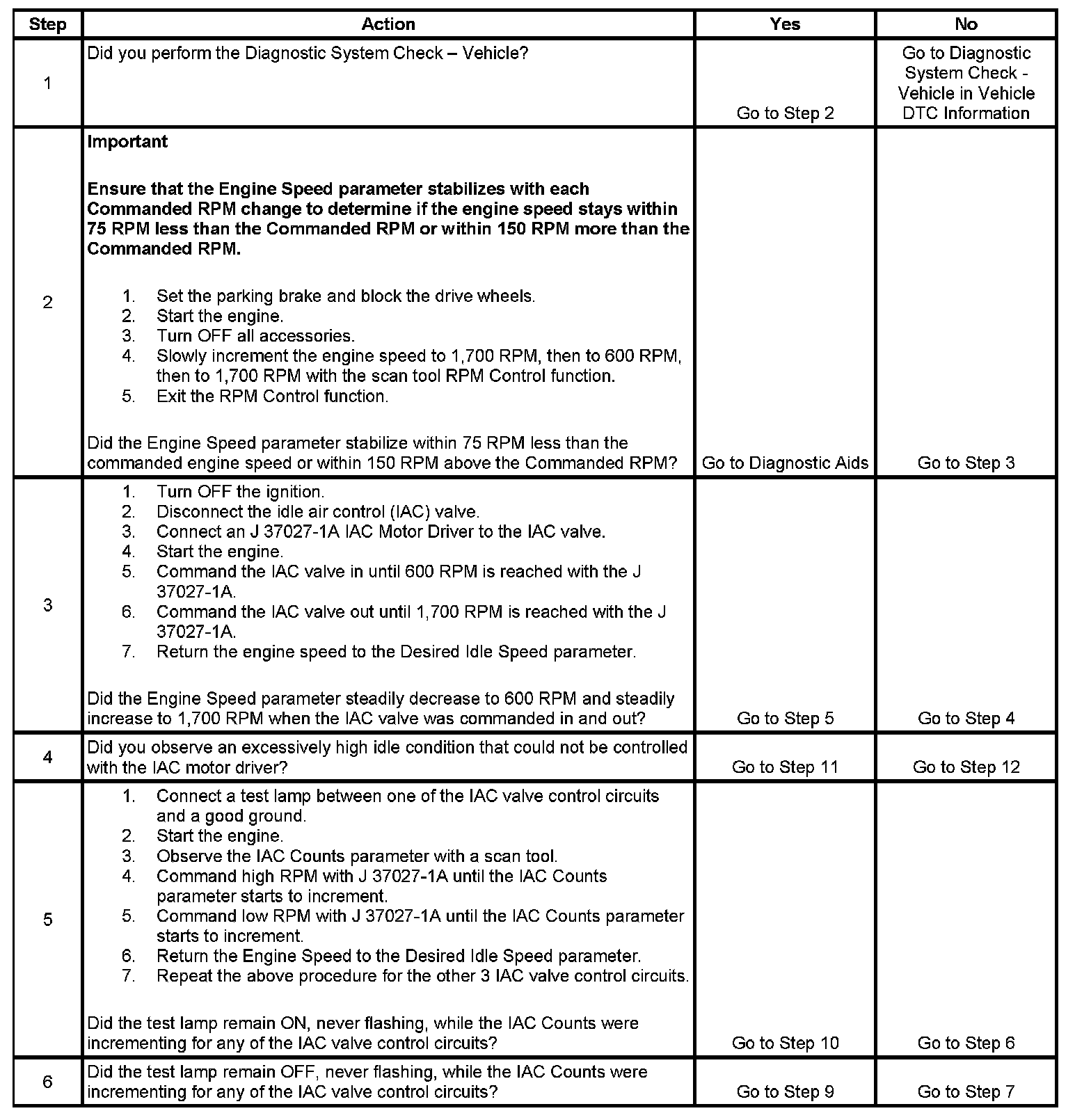 5. This test will determine the ability of the PCM and IAC valve control circuits to control the IAC valve.
