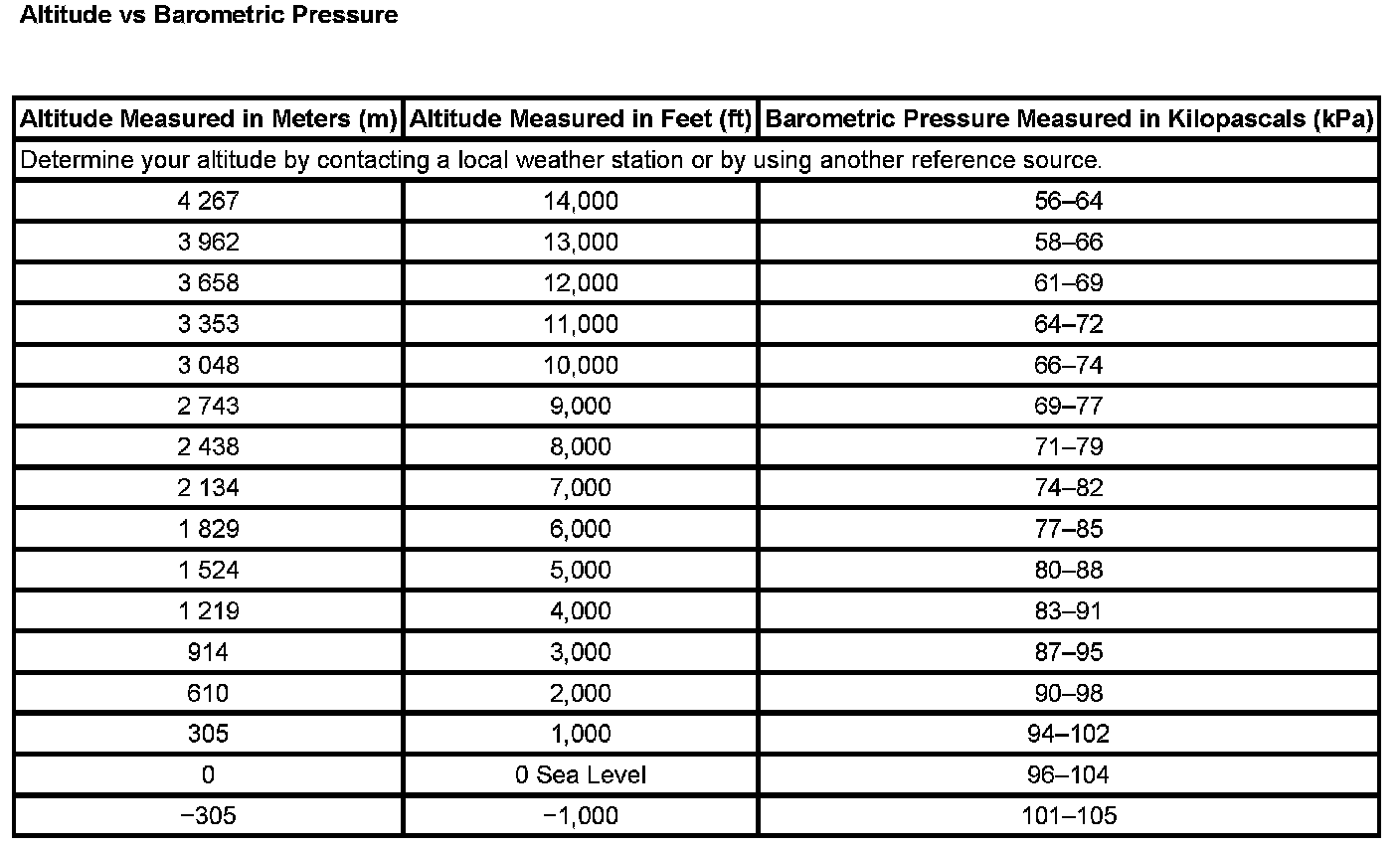 Pressure, Vacuum and Temperature Specifications