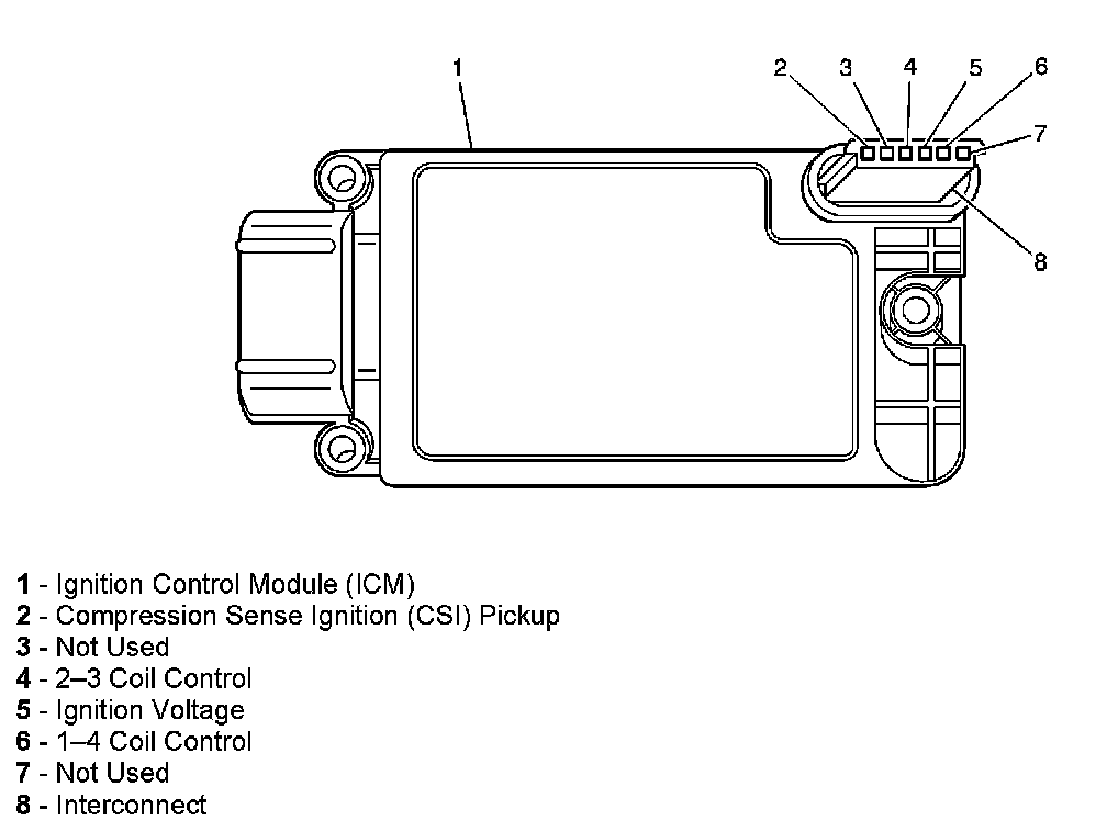 The powertrain control module (PCM) supplies a signal on each of the ignition control (IC) timing control circuits to the ignition control module (ICM). The ICM fires the correct ignition coil at the correct time based on the signals. The ICM detects if cylinder 1 or cylinder 3 is on the compression stroke by sensing the secondary voltage and polarity of each side of the ignition coil. The ICM detects this voltage with sensing circuitry integrated into each ignition coil. The higher voltage is on the compressing cylinder. This is called compression sense ignition. The ICM provides a synthesized cam signal to the PCM based on these inputs. The PCM uses the cam signal to synchronize fuel injection.