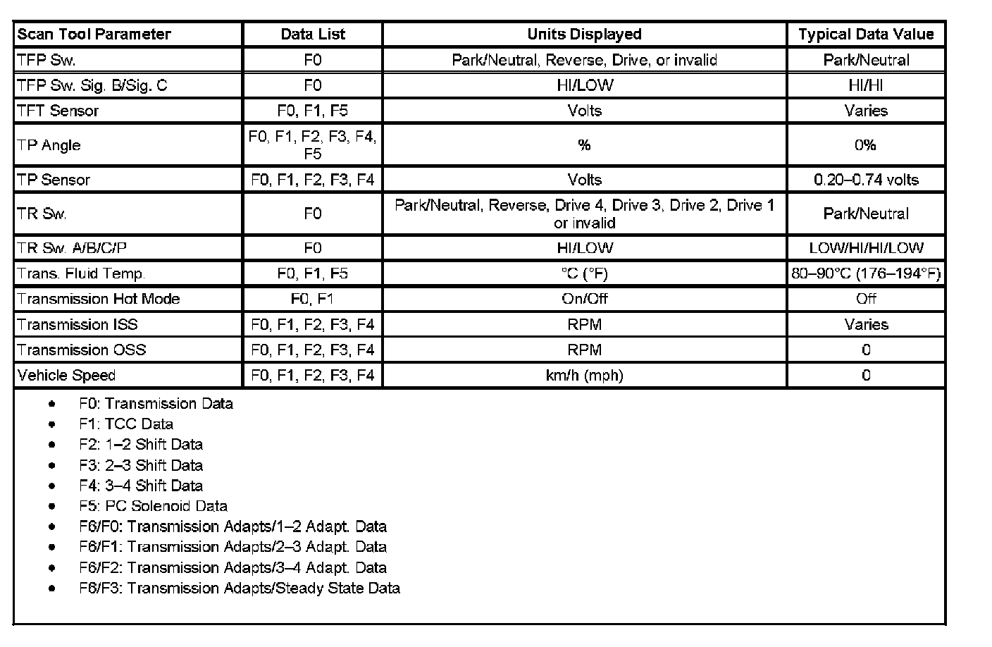 Transmission Scan Tool Data List