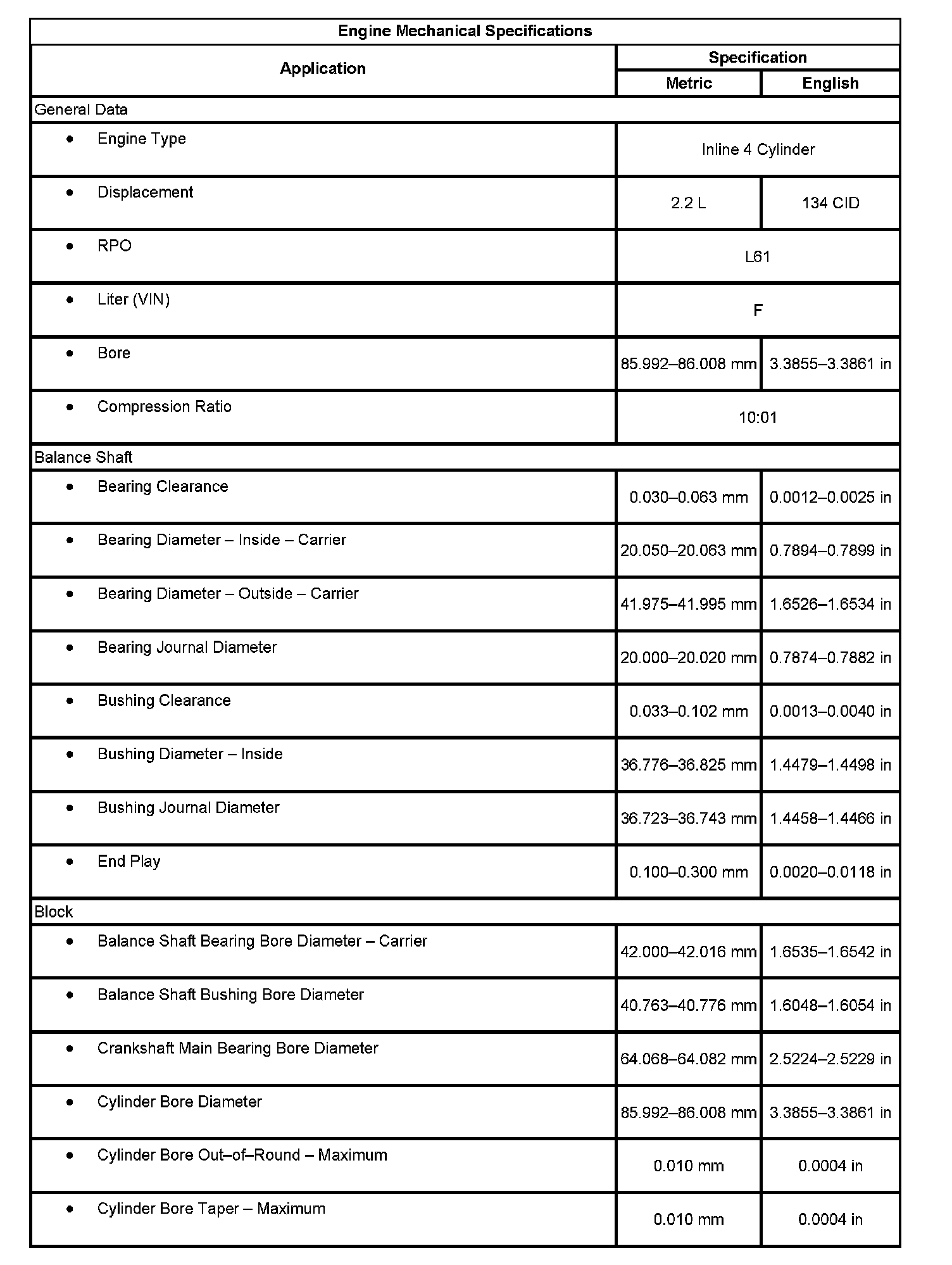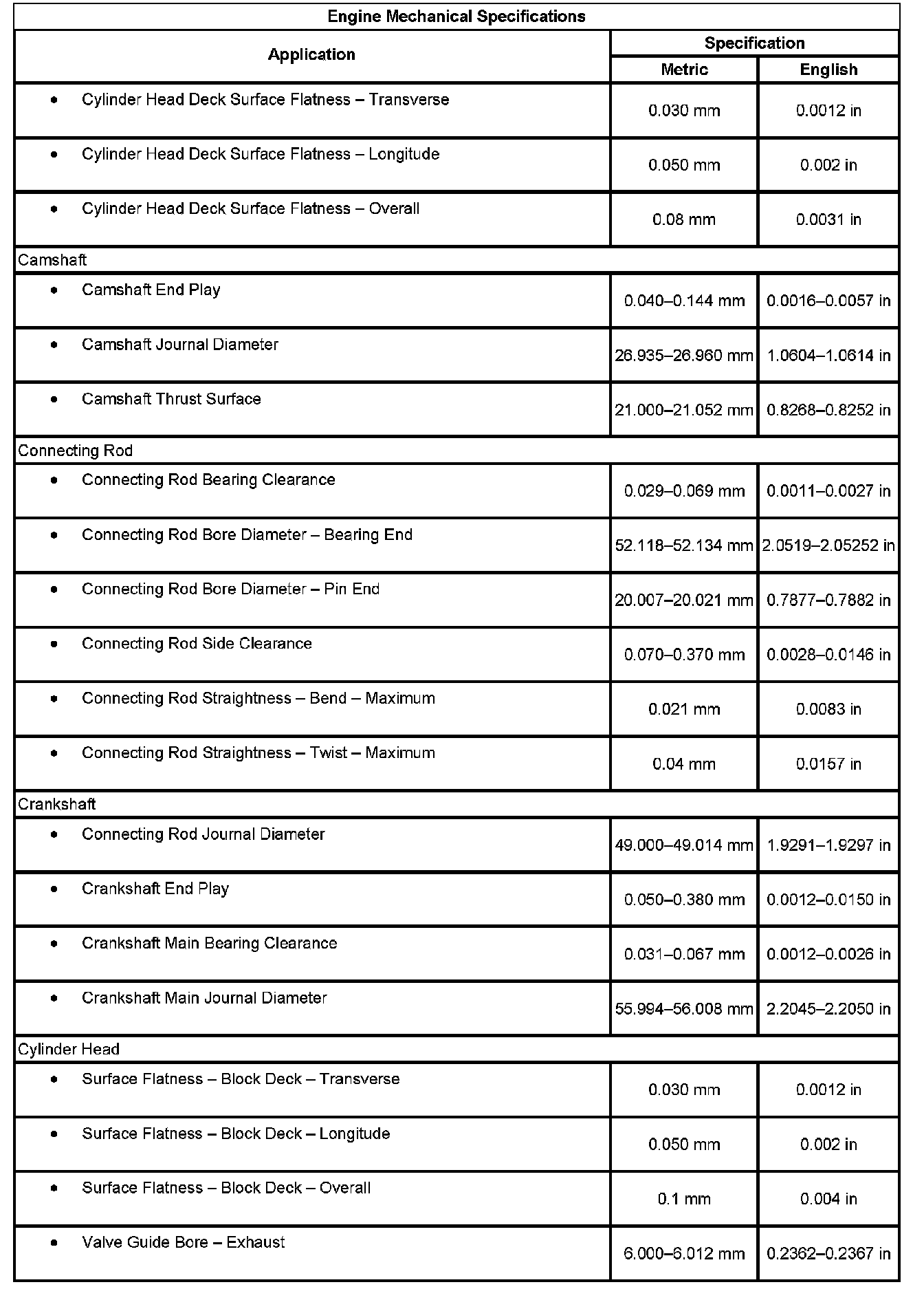 Engine Mechanical Specifications
